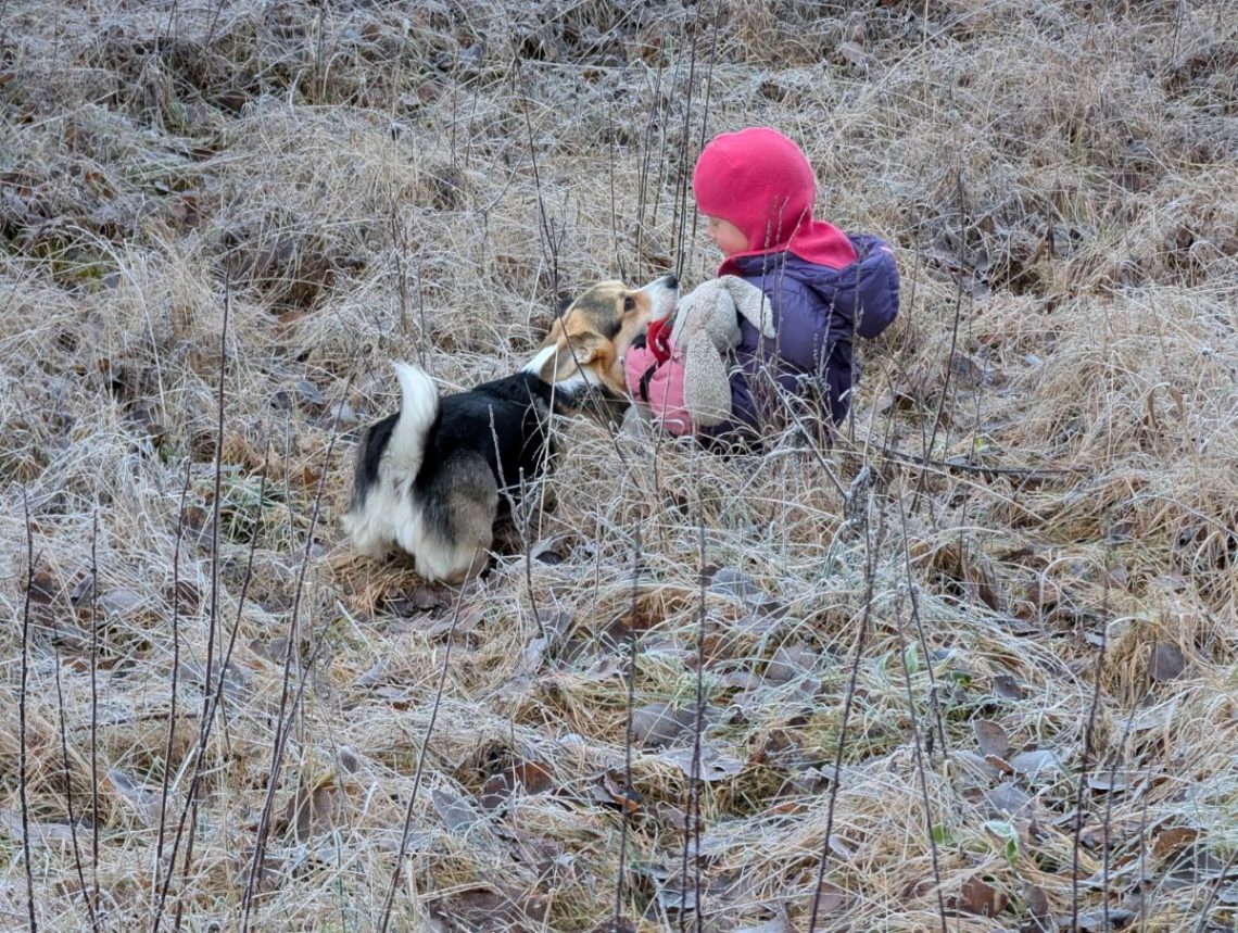 Motsatt er Corgi-mamma Ada og datteren Elsa helt i sitt rette element når været viser muskler. Ada, fire år gammel og rød og hvit i pelsen, tåler alt fra snøfokk til bitende vind. Elsa, tricolor og snart to år, er mammas trofaste skygge – lav og bred som en liten tanks, og like lykkelig uansett vær. Når kulda kommer, er det som oftest disse to som følger oss gjennom dagens små og store gjøremål ute. Enten vi bærer ved, måker snø, sjekker drivhusene eller ser til hønene, er det alltid to korte corgi-ben som tripper like ved.